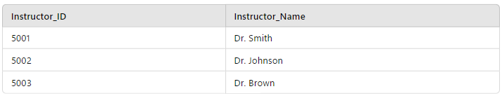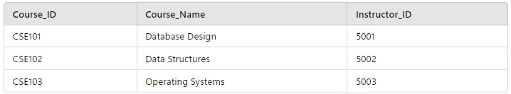 To achieve 3NF, we will now break out the transitive dependency of the Instructor_Name into a new table capturing the properties of instructors and modify the Courses table to remove the Instructor_Name column.