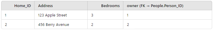As a simple example, imagine we have a “Persons” object that contains properties of individuals such as their name and age, but also a property capturing the number of bedrooms their primary residence has. This could be considered at first glance to be a property of each person, but really is a property of their home with a relationship between each individual and the home they own providing the link.