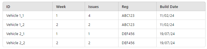 Here a specific dataset is being produced by the business, and there is nothing fundamental in Foundry to stop us using the table directly to create an ontology object per row (albeit by using a convoluted object type!). Yet it’s reasonably clear that the ontology object types we would want to create from the table would be better as “Vehicle” and “Weekly Issue Report”. We could not, however produce a “Daily Issue Report” without getting access to additional tables from the source system, as the information simply isn’t captured in the weekly summary.